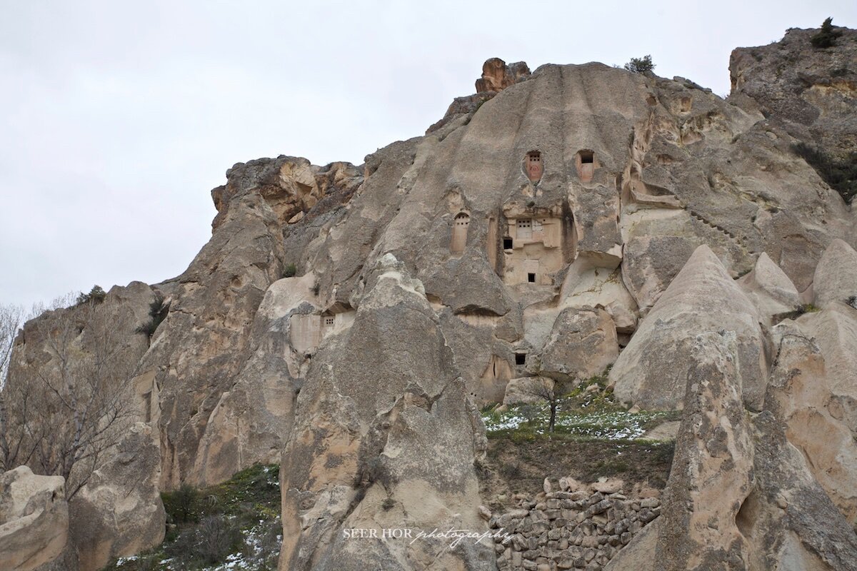A car was useful to get from A to B but to enjoy the landscape of Cappadocia, travelling by foot along many trails was the best. Red and Rose Valley were our first two trails. They could be done separately or together. If it were to be more sunny, I expect the colours to be more vibrant. High up in the hills, you can see small door and window openings which are parts of cave houses, churches and monasteries.